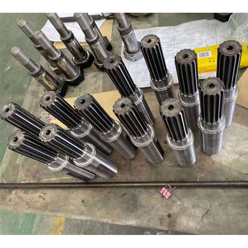 棒料、鍛件 → 粗車加工 → 調(diào)質(zhì) → 精車加工 → 銑鍵槽 → 熱處理(表面淬火貨滲碳淬火) → 研磨中心孔 → 粗磨 → 精磨 → 成品檢測(cè)包裝