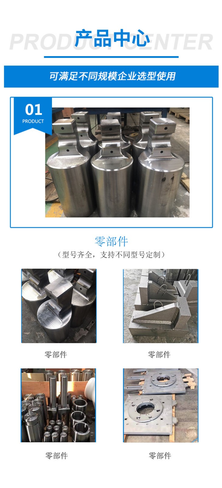 主要產(chǎn)品是大型機加工件,各種軸類(光軸,傳動軸,花鍵軸),非標零部件,開卷線用減速機,非標鉚焊結構件,